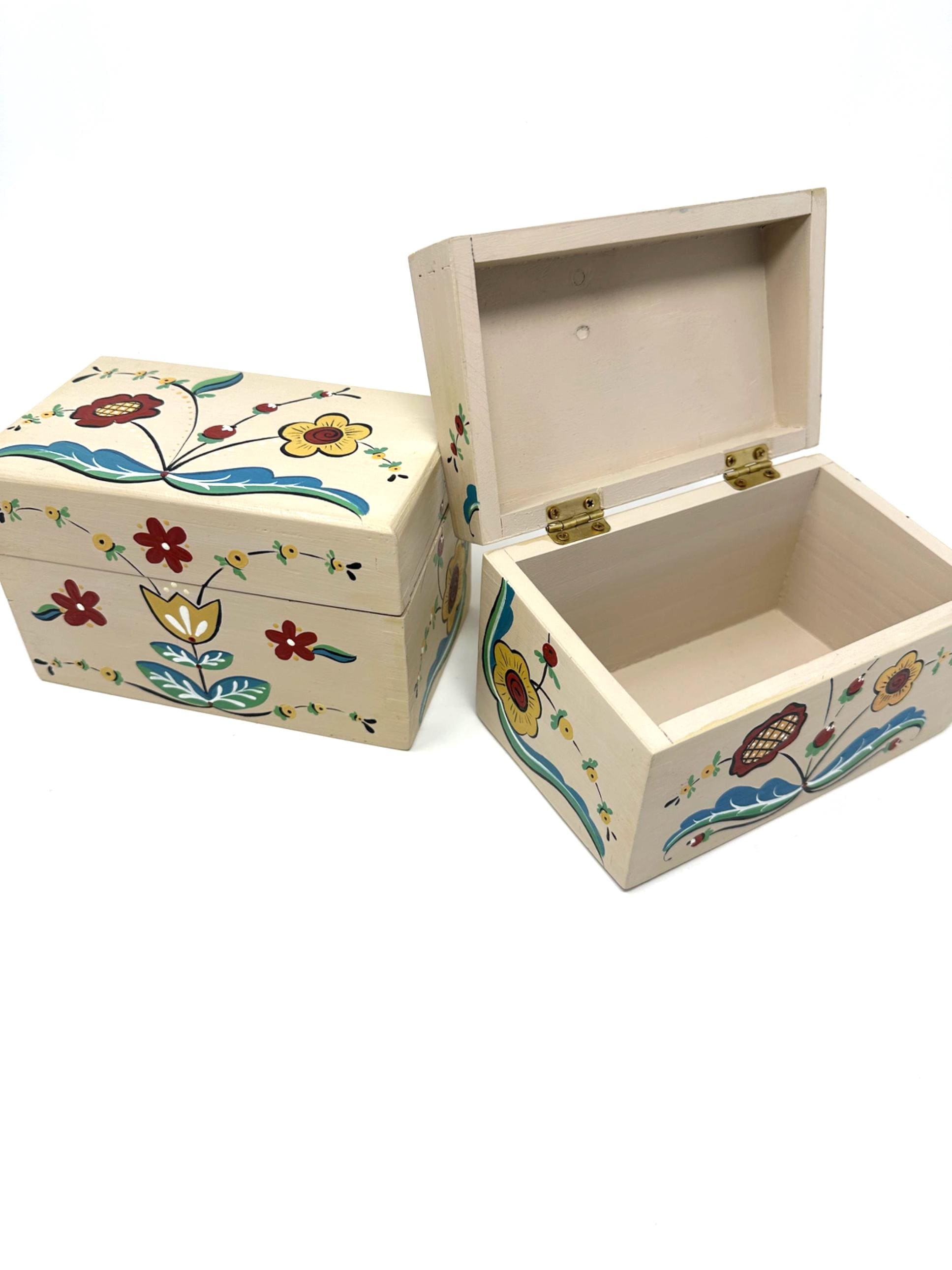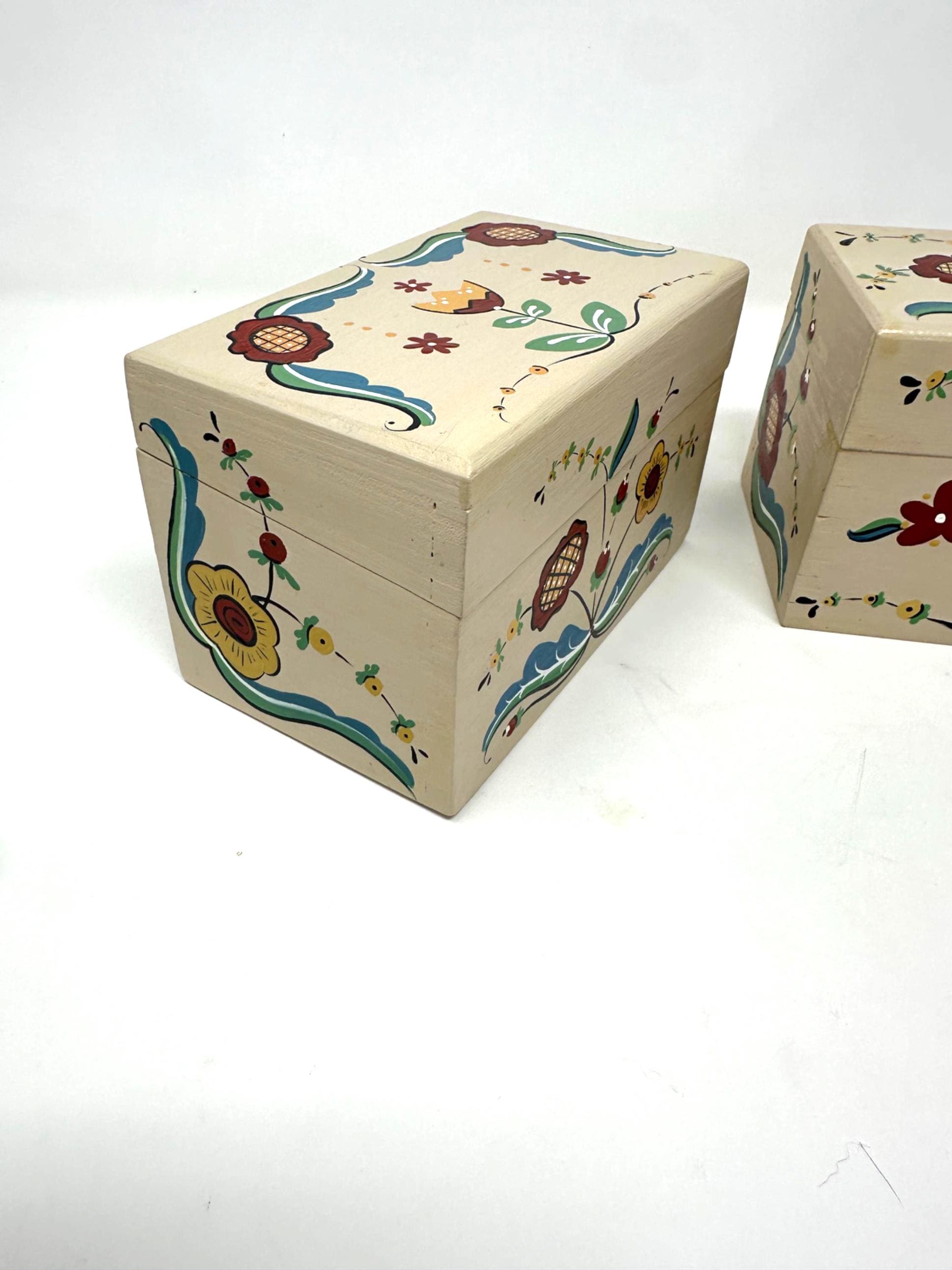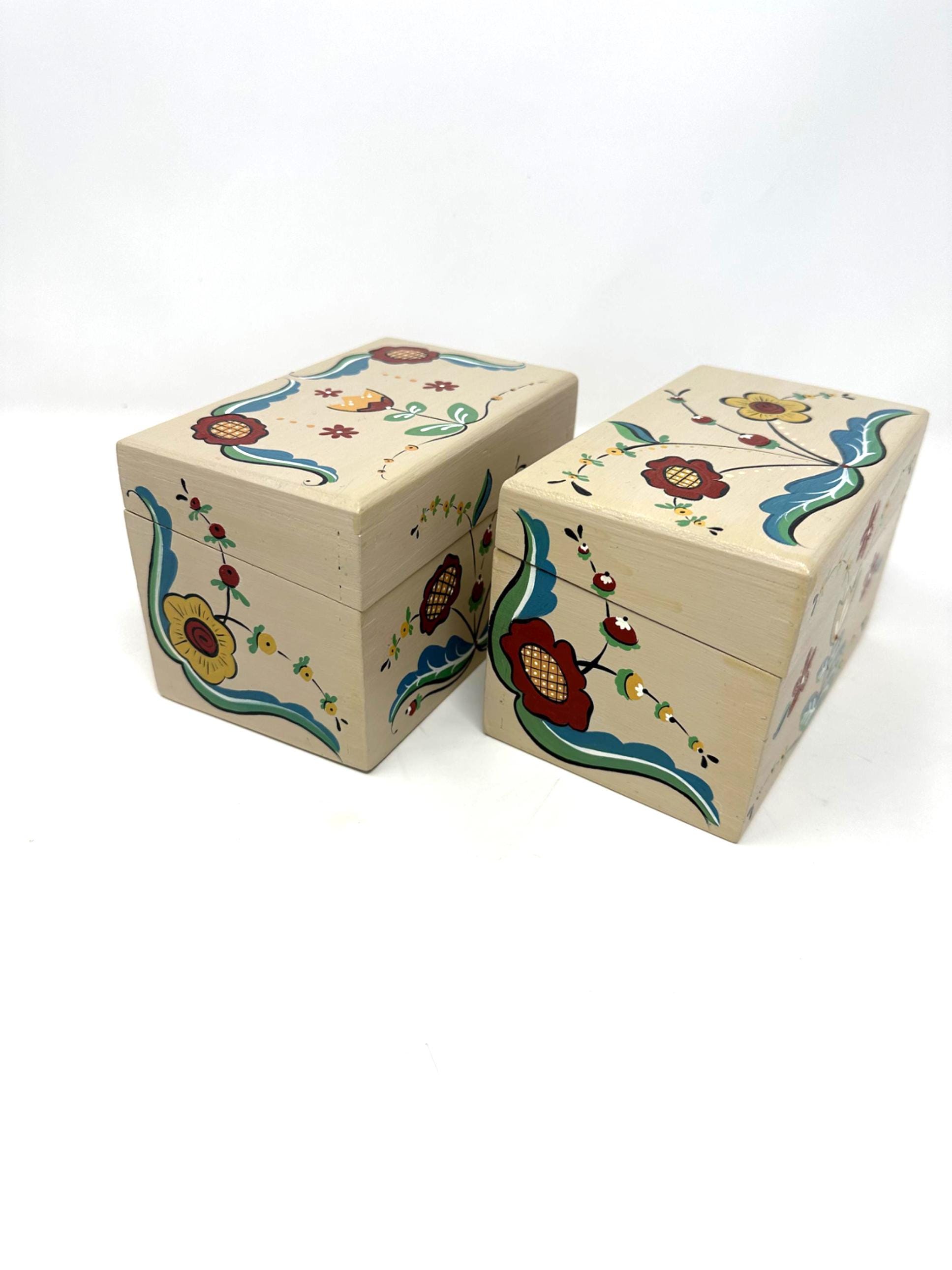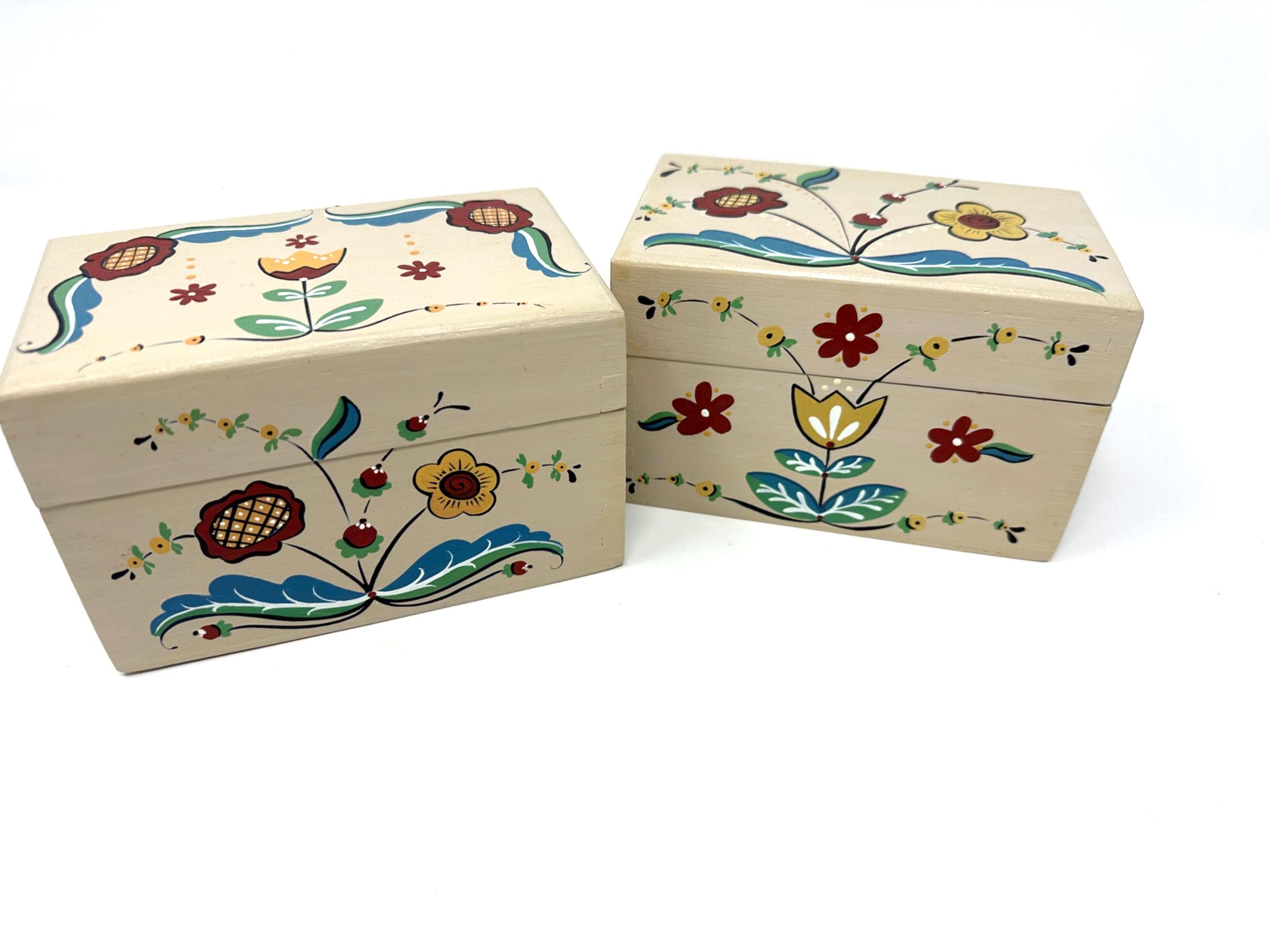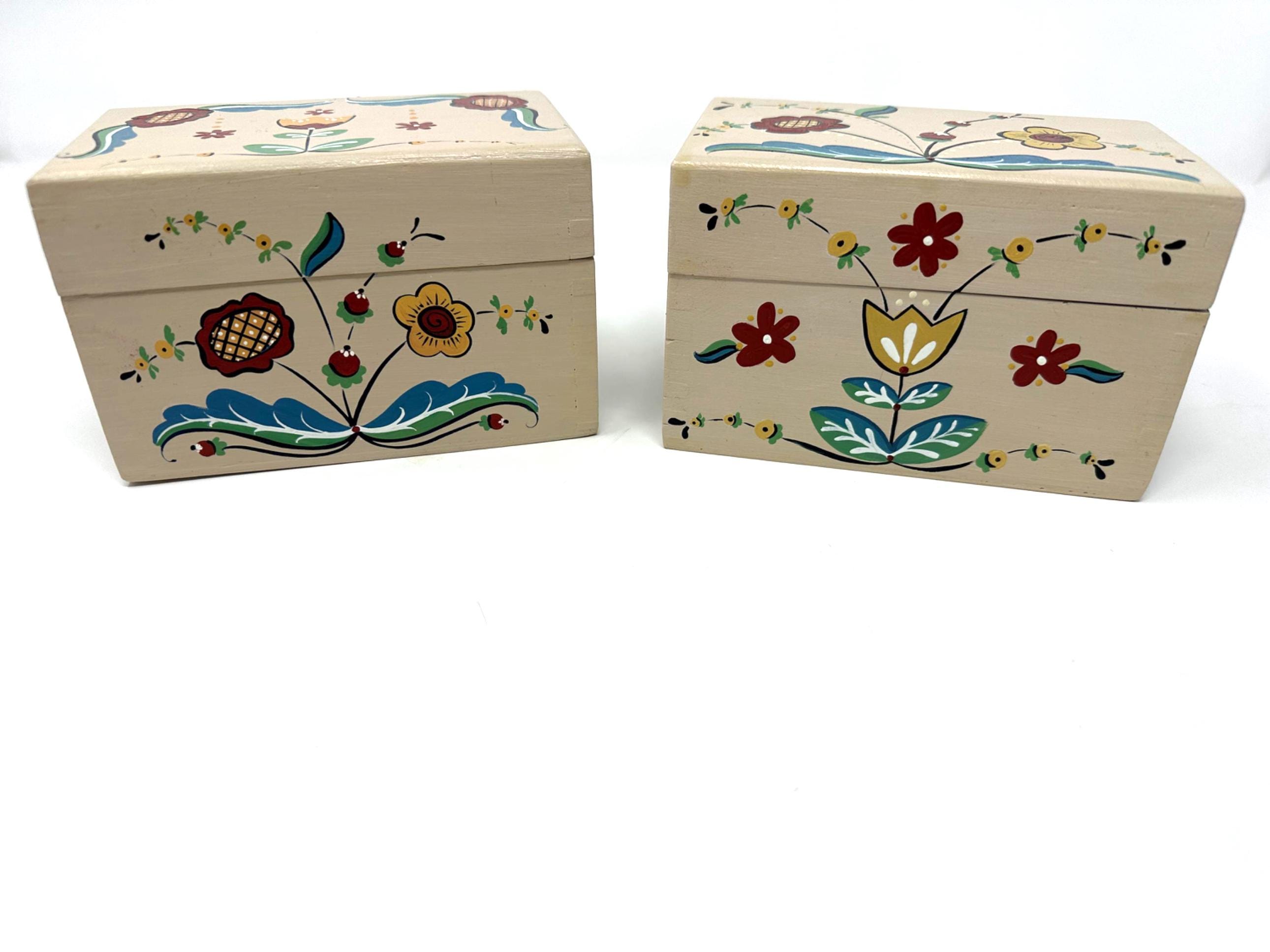 Handpainted recipe boxes in a traditional Swedish folk art motif. Boxes sold separately.