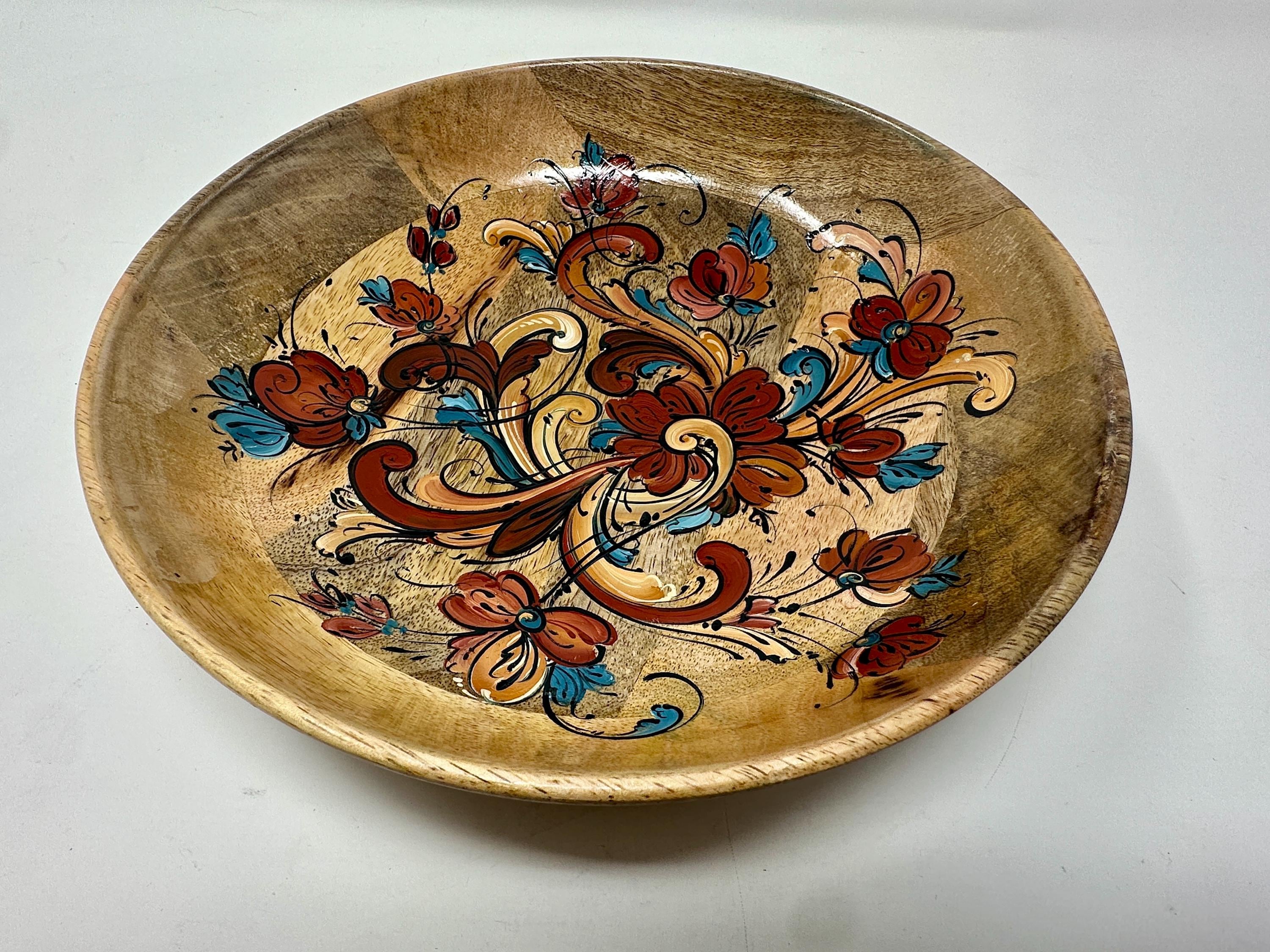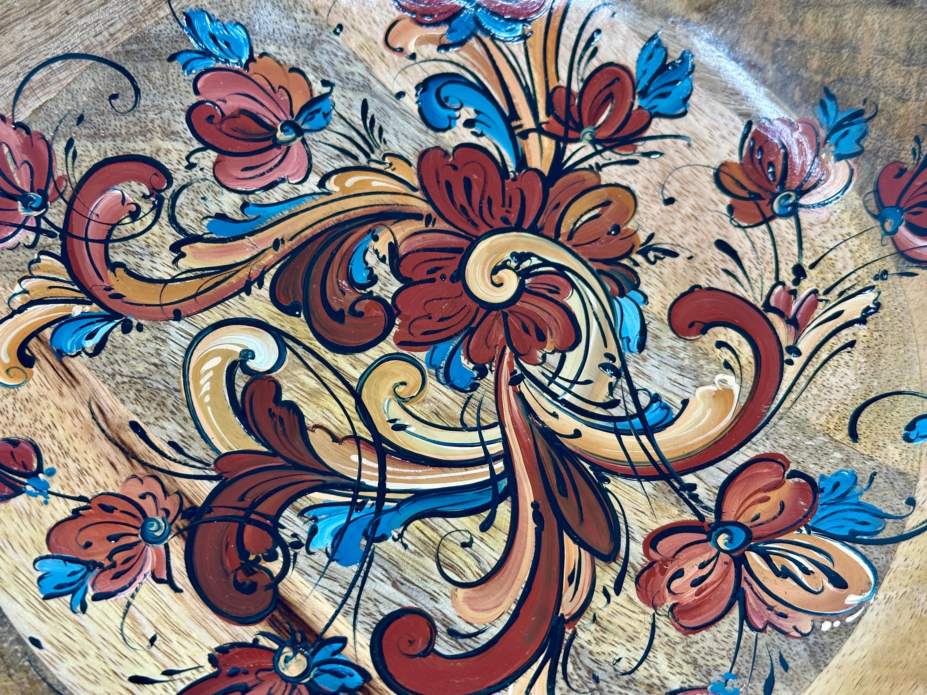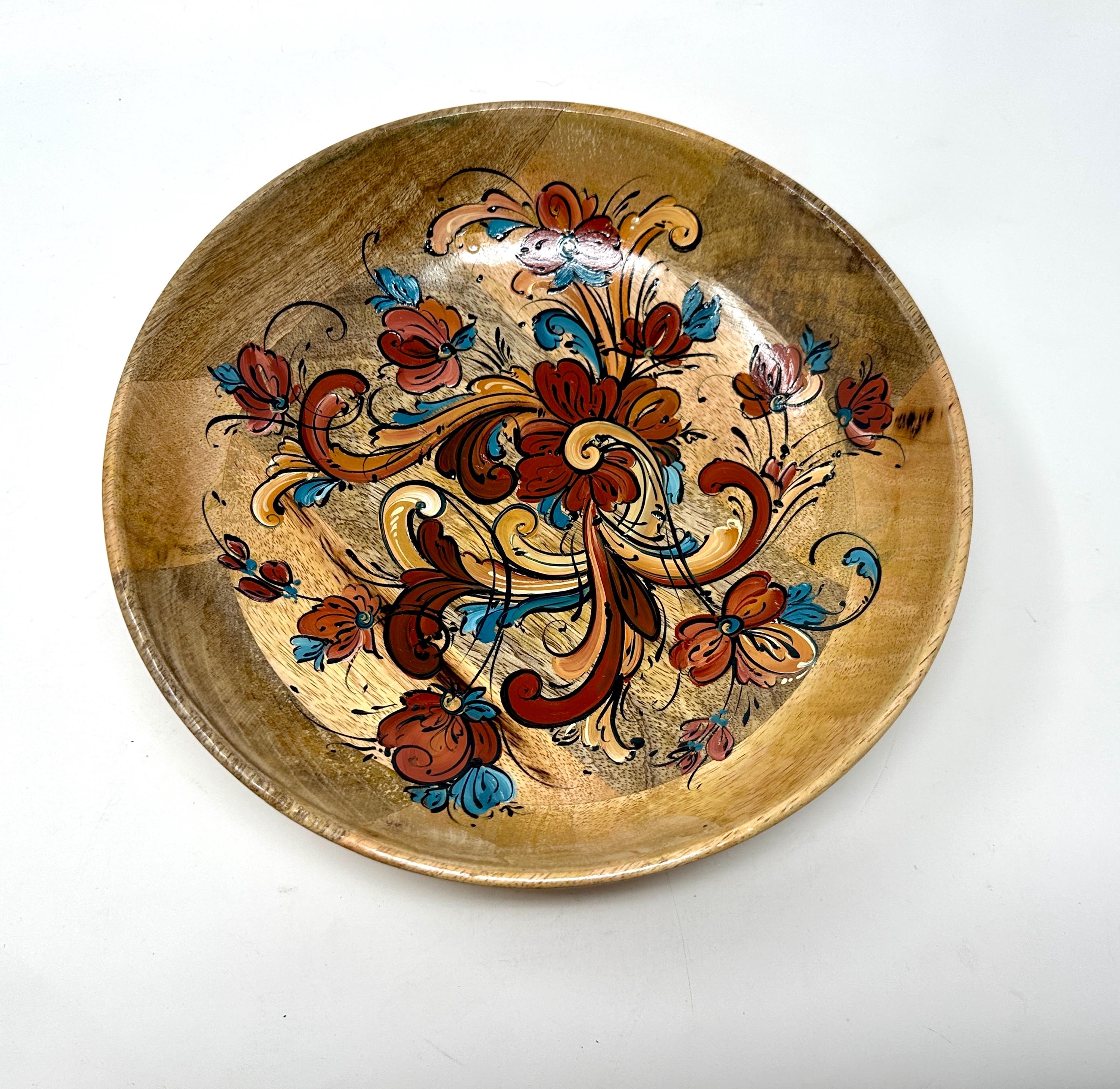 Handpainted mango wood bowl with Telemark Rosemaling. oil paint sealed with shellac, a food safe natural finish.
