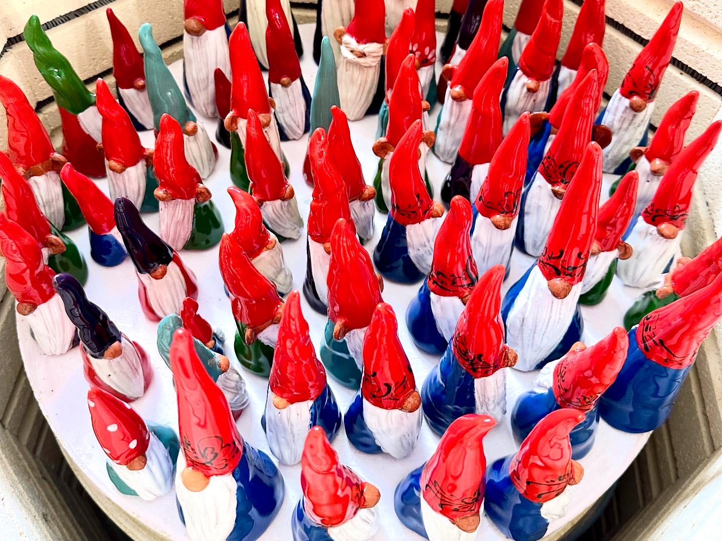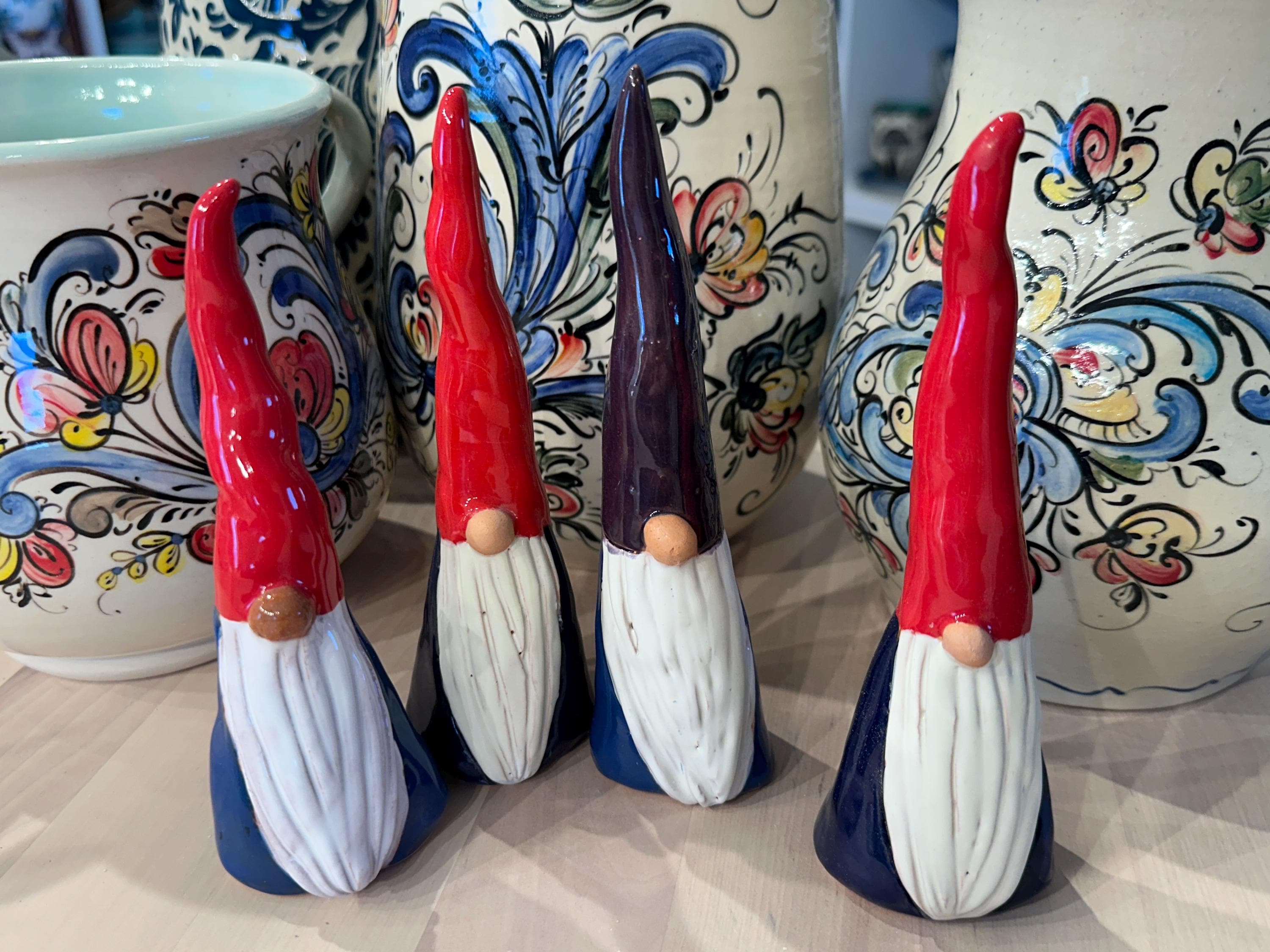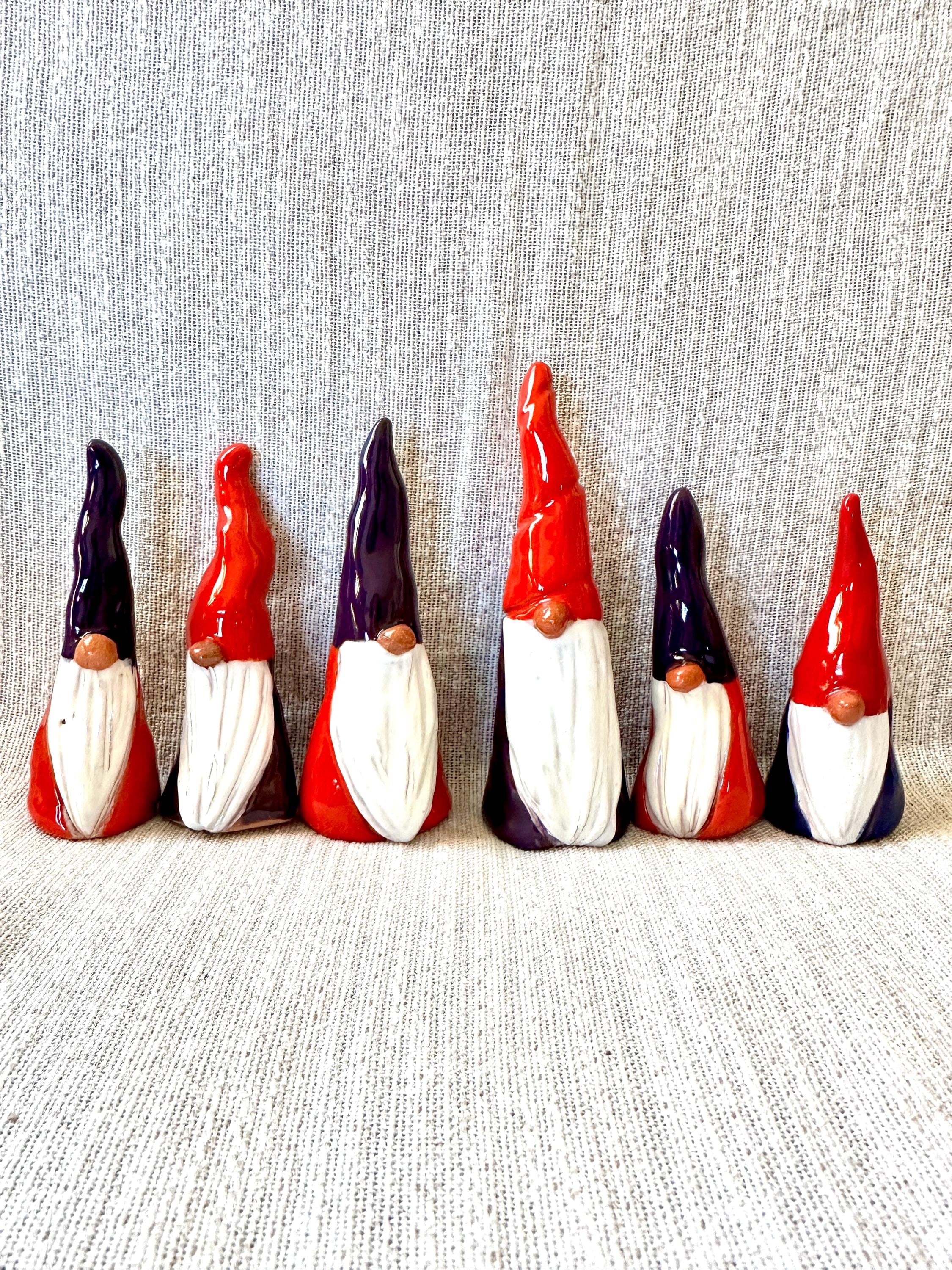 Hand made clay Scandinavian Nisse and Tomte. In Scandinavian folklore, Norwegian Nisse and Swedish Tomte are domestic elves who traditionally took care of livestock and the barn........they now look after our home and pets.
